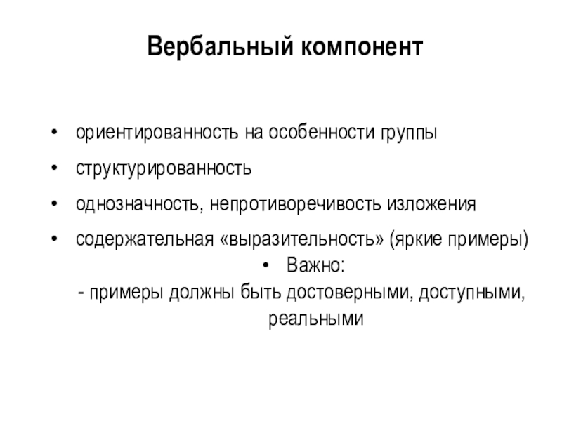 Слайд 23Вербальный компонент