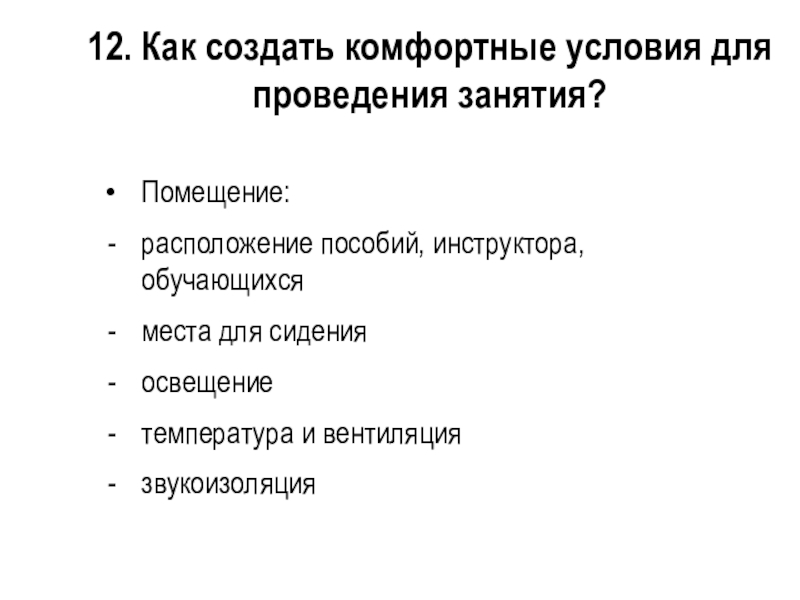 Слайд 4212. Как создать комфортные условия для проведения занятия?
