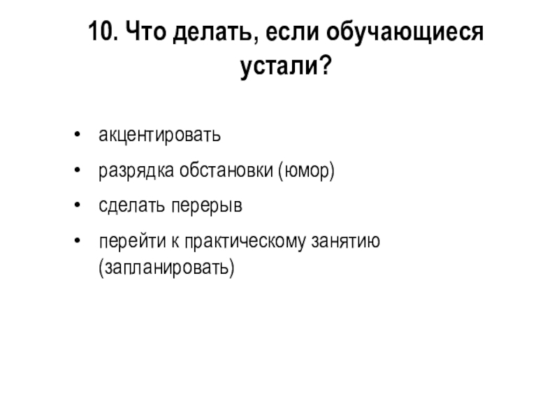 Слайд 4010. Что делать, если обучающиеся устали?
