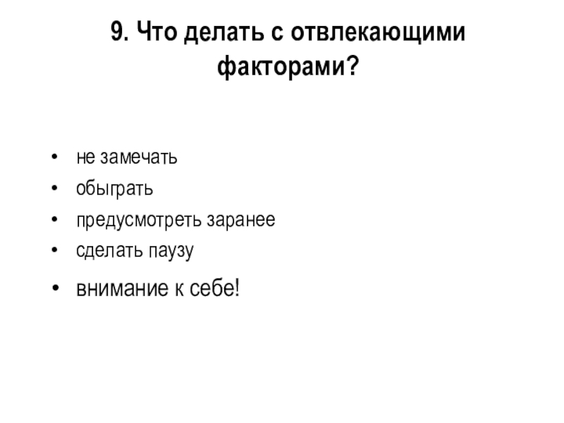 Слайд 399. Что делать с отвлекающими факторами?