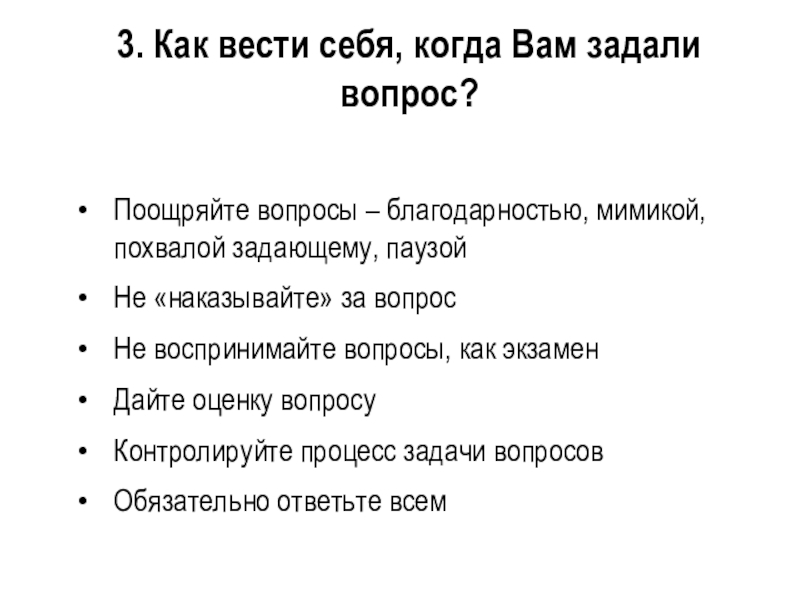 Слайд 333. Как вести себя, когда Вам задали вопрос?