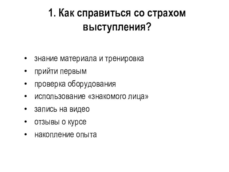 Слайд 311. Как справиться со страхом выступления?