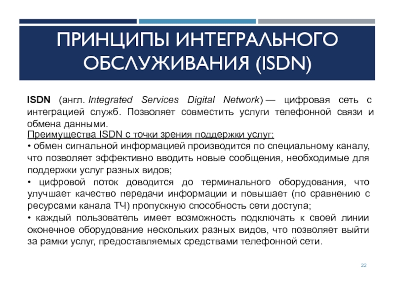 • каждый пользователь имеет возможность подключать к своей линии оконечное оборудование нескольких разных видов, что позволяет выйти за рамки услуг, предоставляемых средствами телефонной сети.