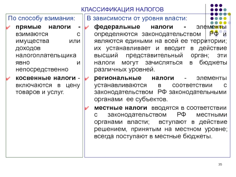 КЛАССИФИКАЦИЯ НАЛОГОВ