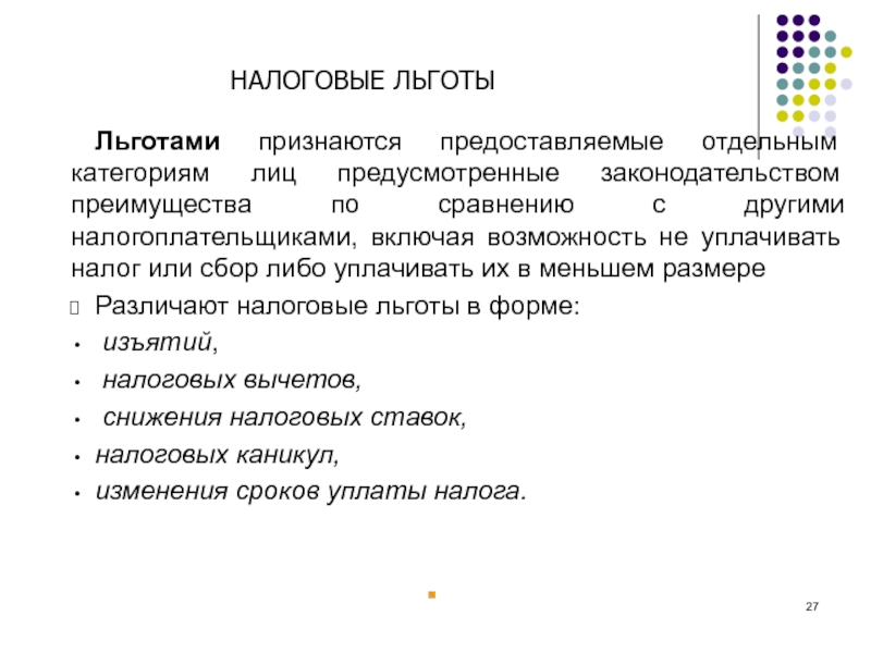 Слайд 27НАЛОГОВЫЕ ЛЬГОТЫ