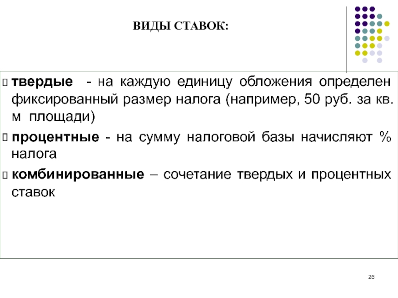 прогрессивные - с ростом налоговой базы растет ставка налога;