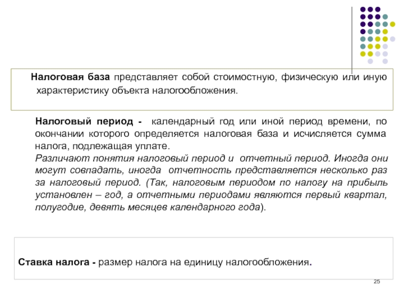 Слайд 25Налоговая база представляет собой стоимостную, физическую или иную характеристику объекта