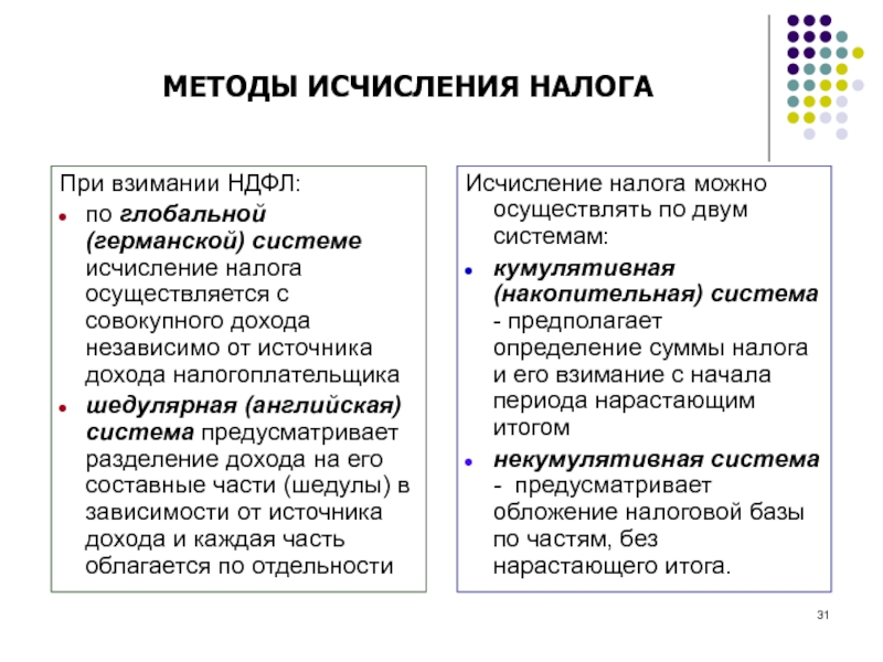Слайд 31МЕТОДЫ ИСЧИСЛЕНИЯ НАЛОГА