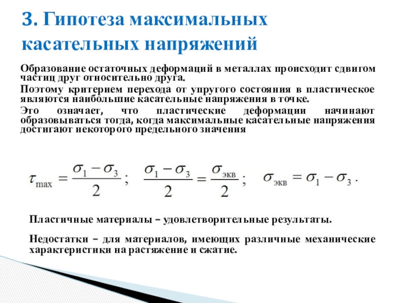 Недостатки – для материалов, имеющих различные механические характеристики на растяжение и сжатие.