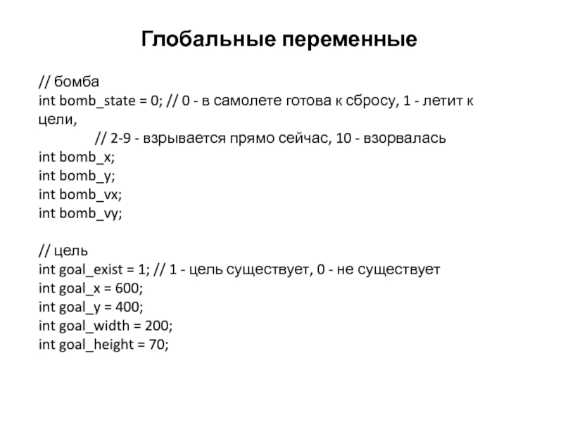 int goal_exist = 1; // 1 - цель существует, 0 - не существует