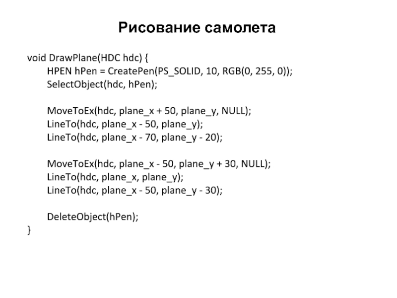 MoveToEx(hdc, plane_x + 50, plane_y, NULL);
