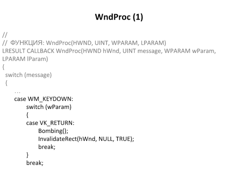 // ФУНКЦИЯ: WndProc(HWND, UINT, WPARAM, LPARAM)