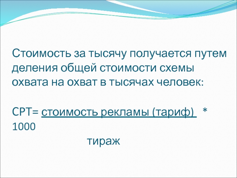Слайд 75Стоимость за тысячу получается путем деления общей стоимости схемы охвата