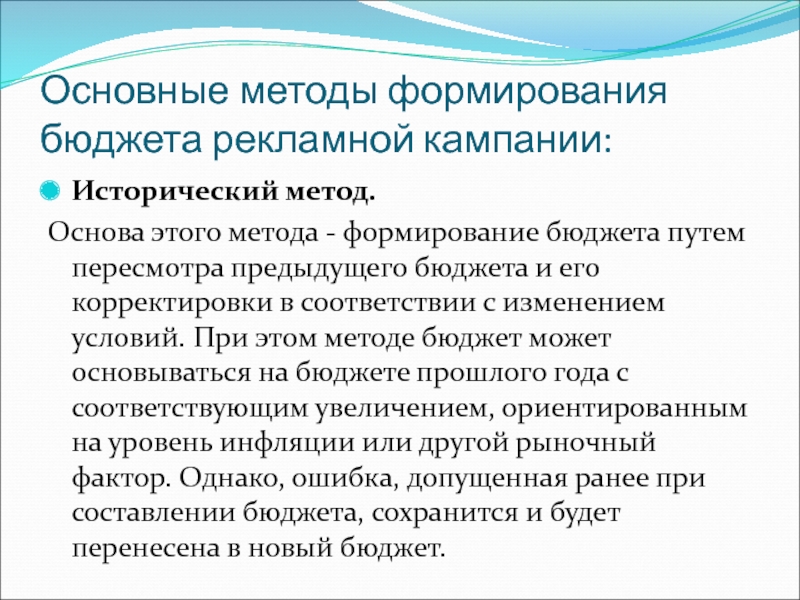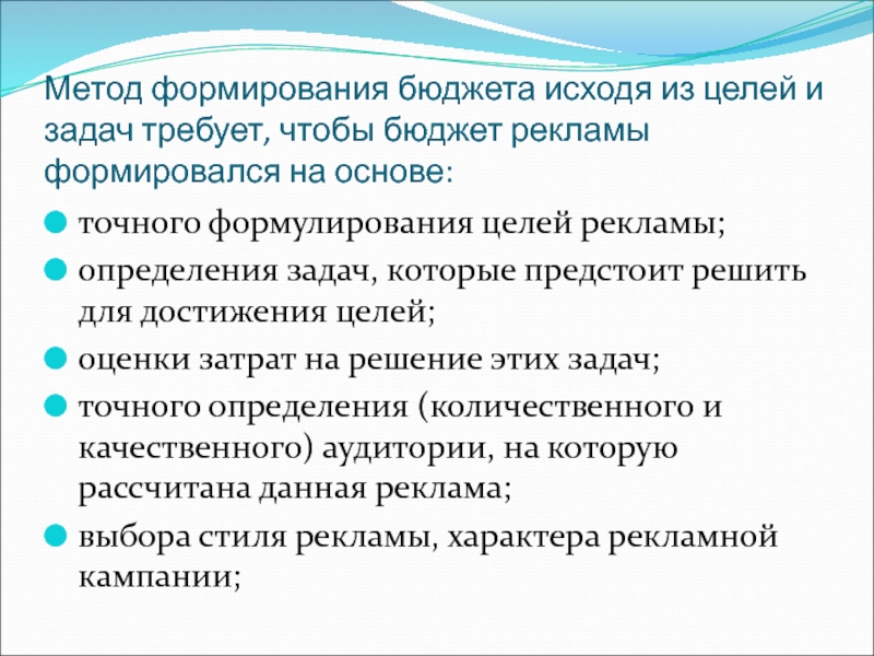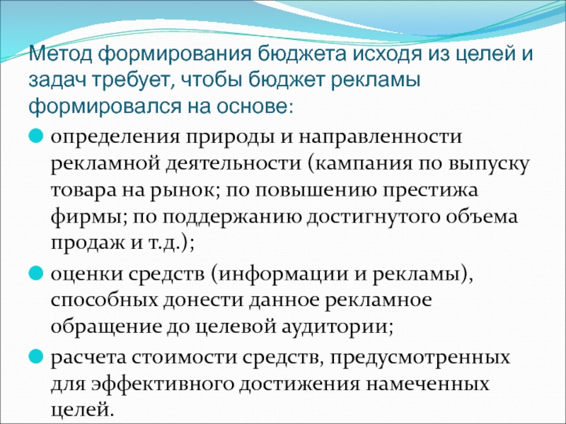 бюджет рекламы формировался на основе: