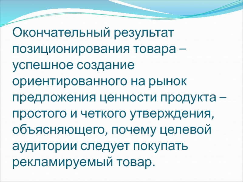Слайд 17Окончательный результат позиционирования товара – успешное создание ориентированного на рынок