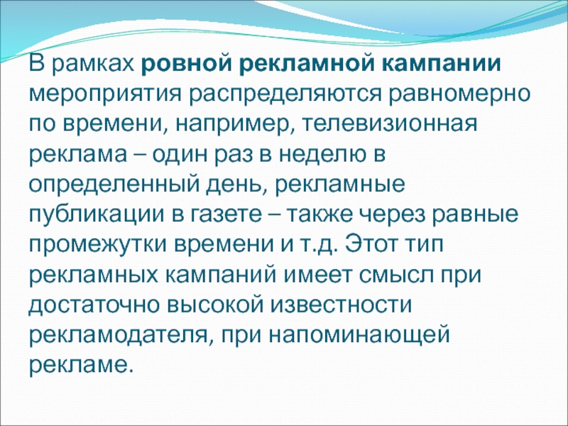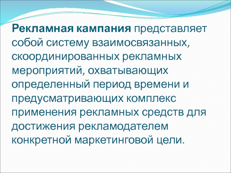 Слайд 25Рекламная кампания представляет собой систему взаимосвязанных, скоординированных рекламных мероприятий, охватывающих