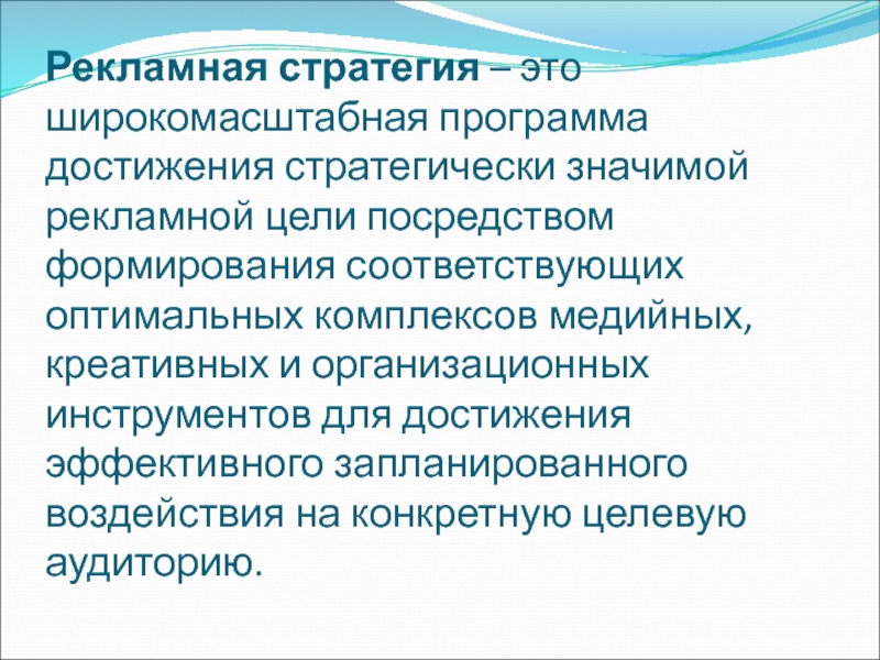 Слайд 9Рекламная стратегия – это широкомасштабная программа достижения стратегически значимой рекламной