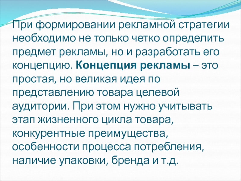 Слайд 15При формировании рекламной стратегии необходимо не только четко определить предмет