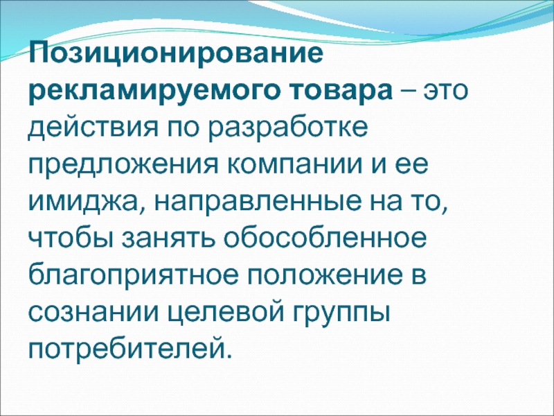 Слайд 16Позиционирование рекламируемого товара – это действия по разработке предложения компании