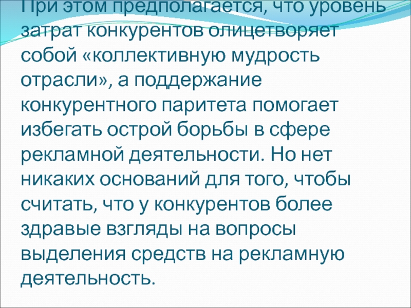 Слайд 59При этом предполагается, что уровень затрат конкурентов олицетворяет собой «коллективную