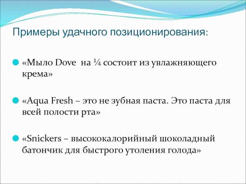 Слайд 19Примеры удачного позиционирования: