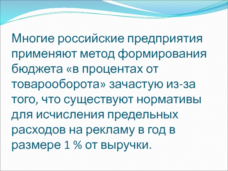 Слайд 56Многие российские предприятия применяют метод формирования бюджета «в процентах от
