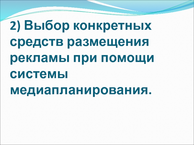Слайд 642) Выбор конкретных средств размещения рекламы при помощи системы медиапланирования.