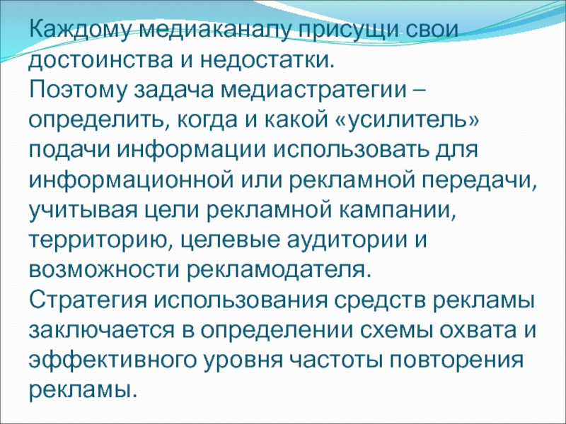 Поэтому задача медиастратегии
