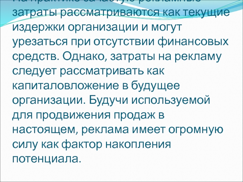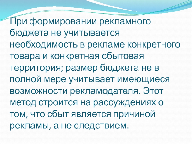 Слайд 55При формировании рекламного бюджета не учитывается необходимость в рекламе конкретного