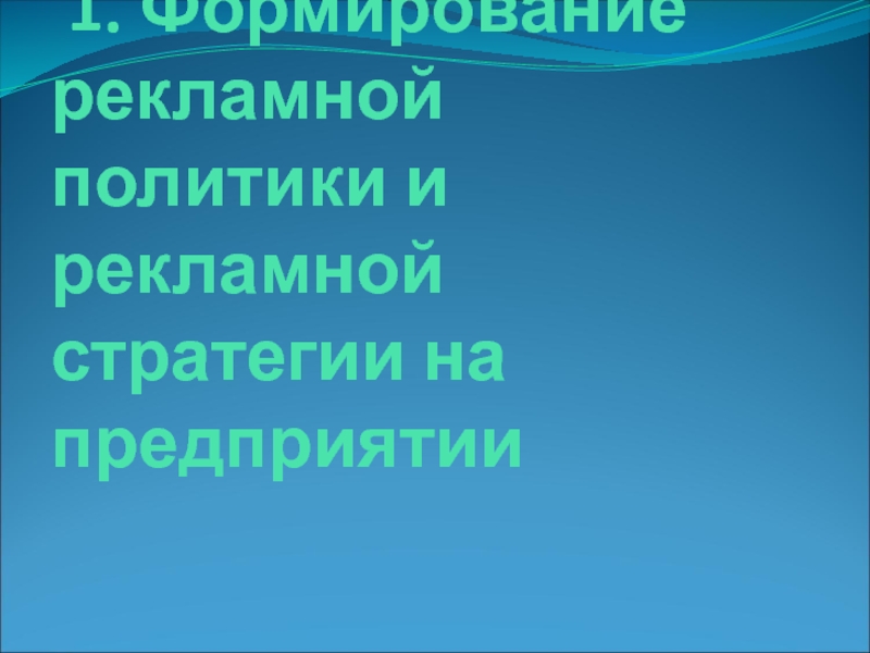 1. Формирование рекламной политики и рекламной стратегии на предприятии
