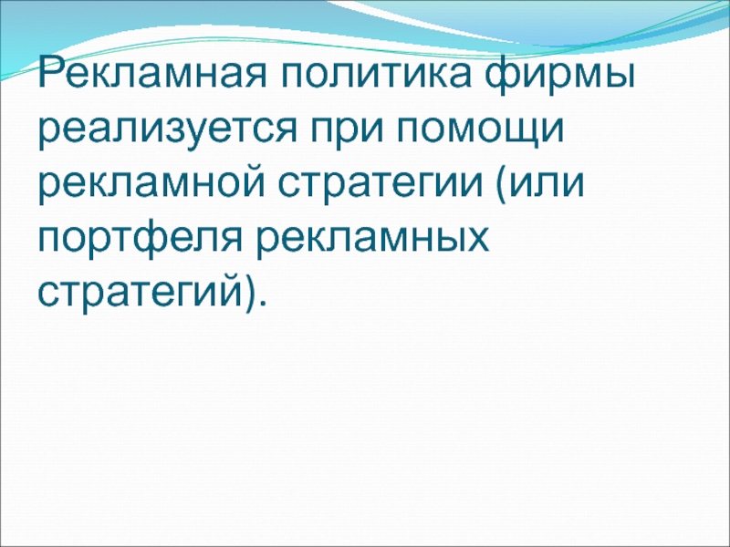 Слайд 8Рекламная политика фирмы реализуется при помощи рекламной стратегии (или портфеля