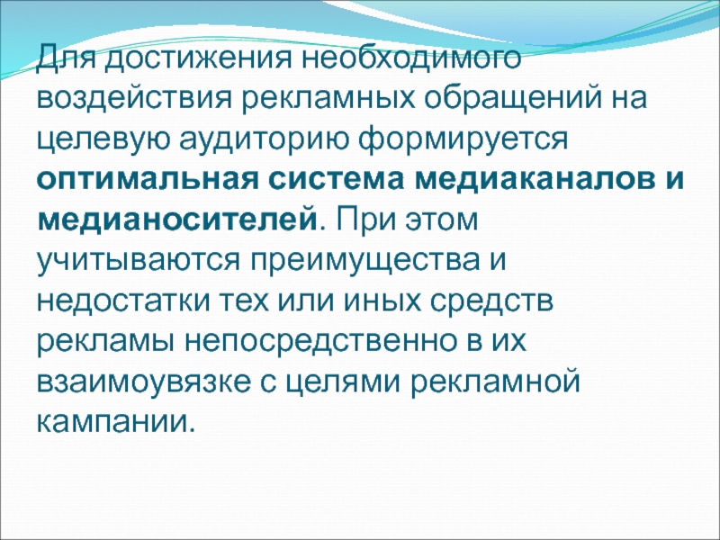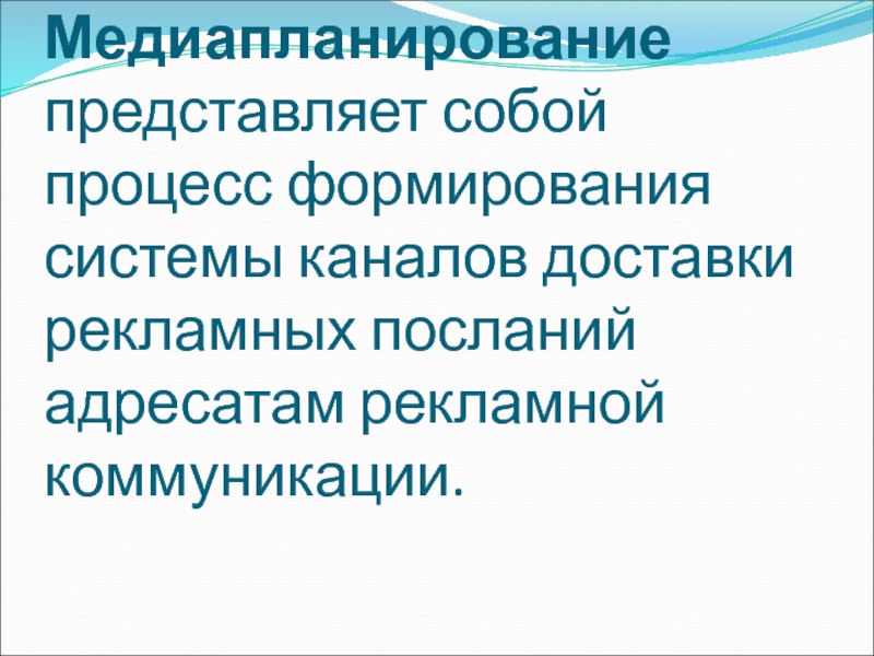 Слайд 68Медиапланирование представляет собой процесс формирования системы каналов доставки рекламных посланий