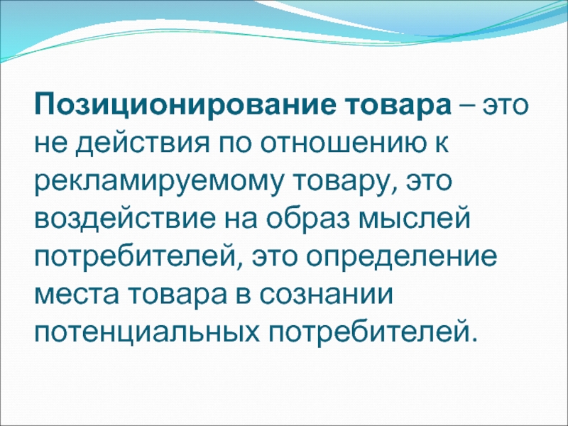 Слайд 18Позиционирование товара – это не действия по отношению к рекламируемому