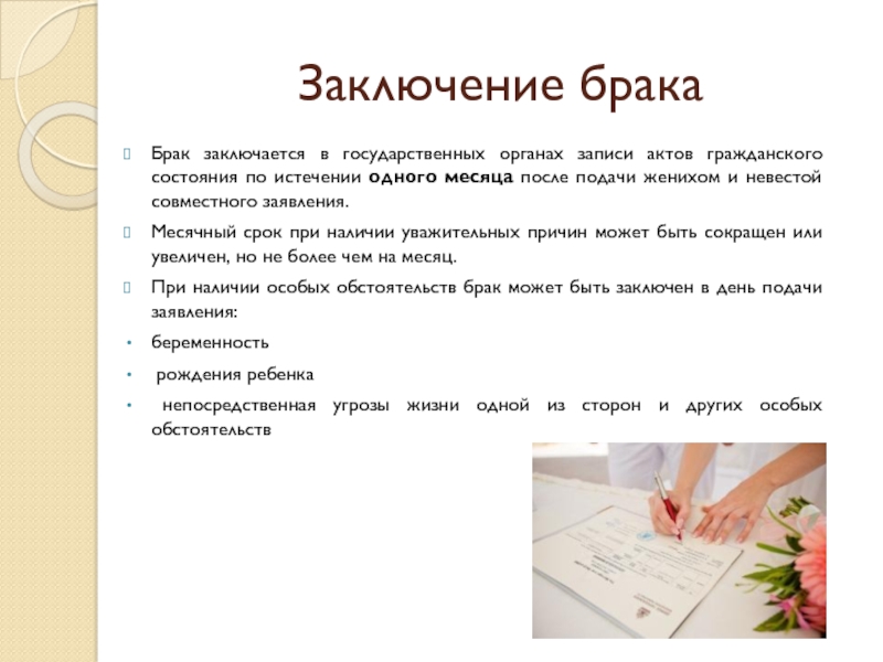 При наличии особых обстоятельств брак может быть заключен в день подачи заявления: