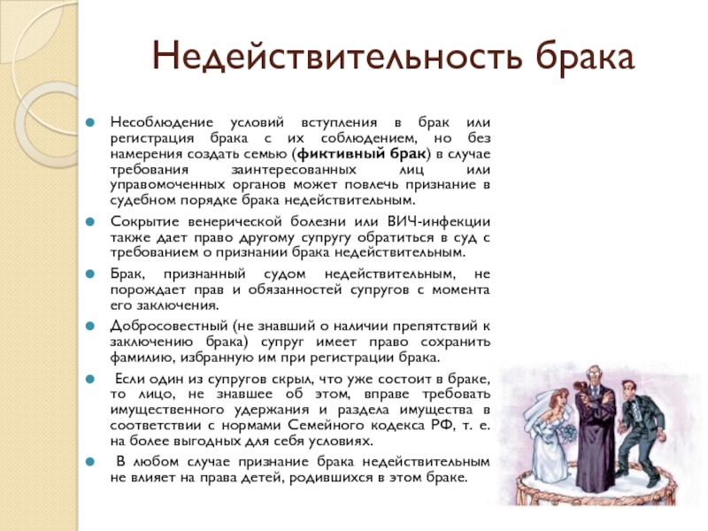 случае требования заинтересованных лиц или управомоченных органов может повлечь признание в судебном порядке брака недействительным.