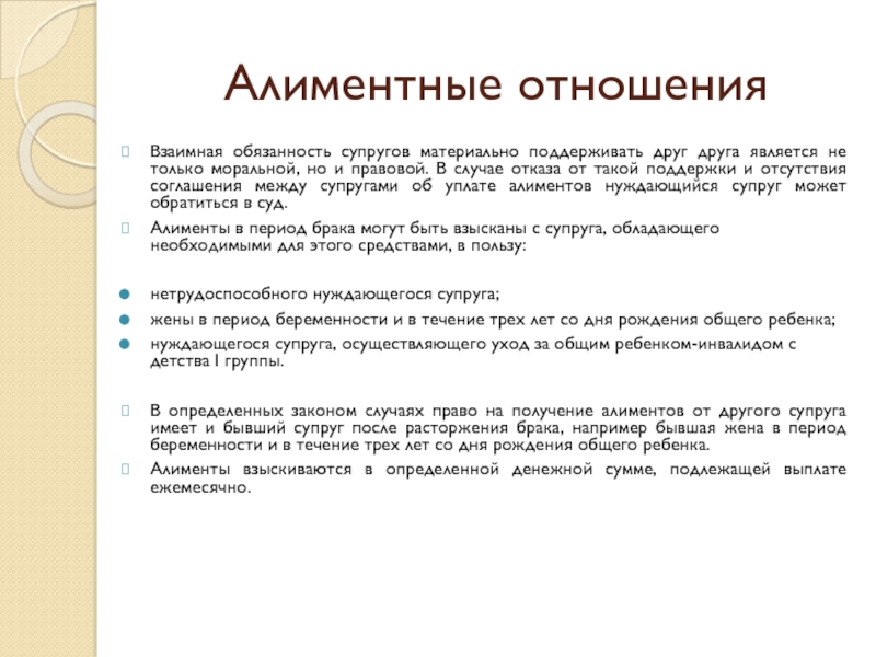 алиментные отношения (отношения по взаимному содержанию супругов).