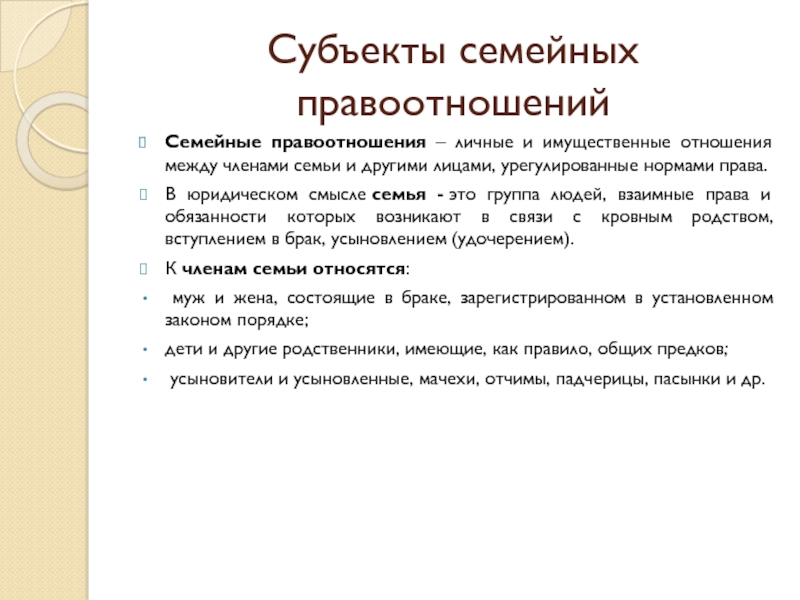 отношения, возникающие между людьми на основе брака, кровного родства, усыновления, принятия детей в семью на воспитание.