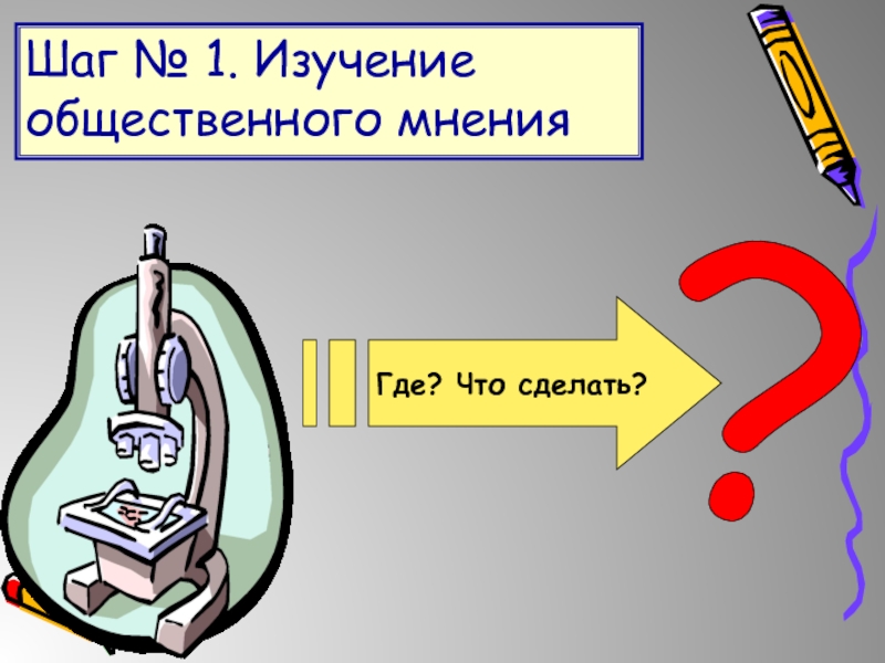Слайд 18Шаг № 1. Изучение общественного мнения