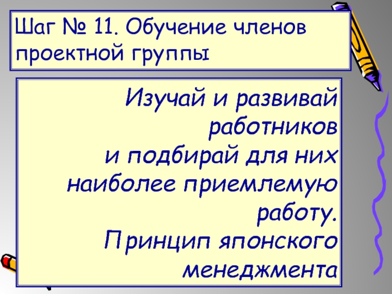 Слайд 38Шаг № 11. Обучение членов проектной группы