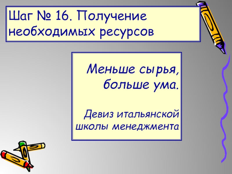 Слайд 44Шаг № 16. Получение необходимых ресурсов