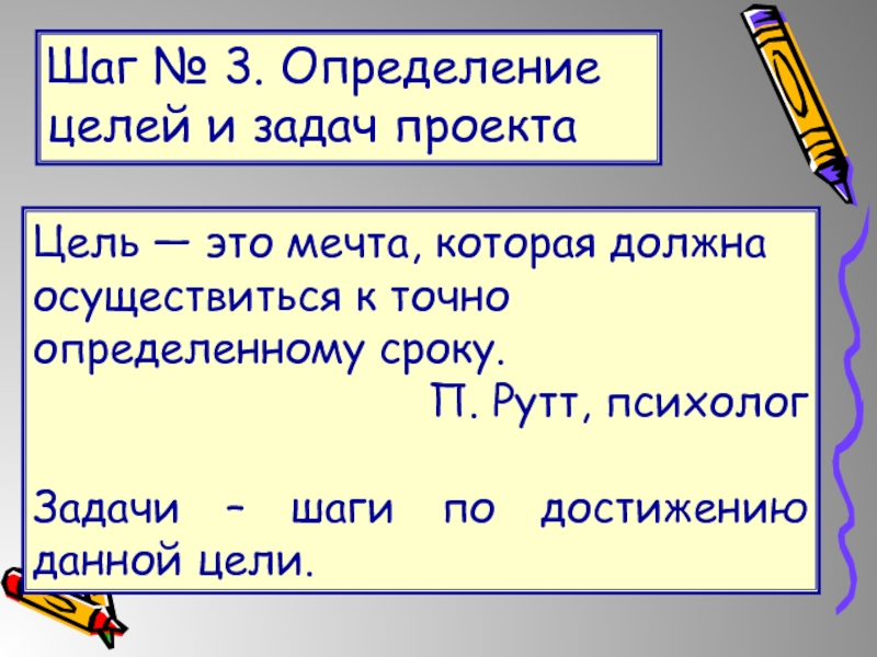 Слайд 22Шаг № 3. Определение целей и задач проекта