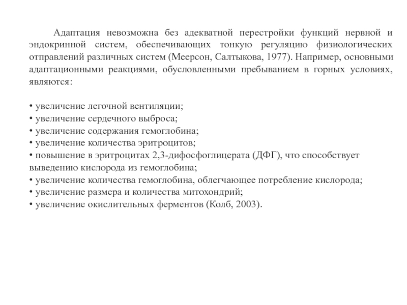 Слайд 5Адаптация невозможна без адекватной перестройки функций нервной и эндокринной систем,