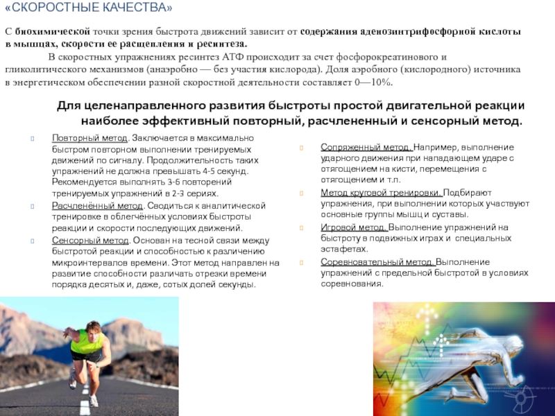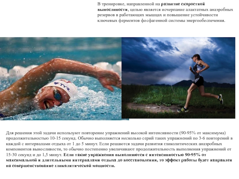 Небольшая по объему нагрузка, но выполняемая с максимальной интенсивностью, формирует скоростные качества.