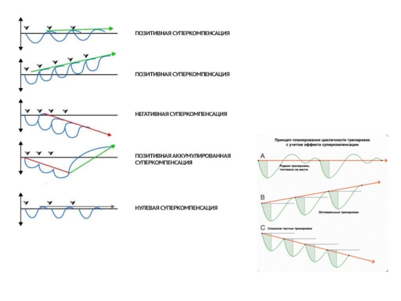 Во время отдыха, организм сначала полностью восстанавливает свой потенциал (компенсация работоспособности), а затем увеличивает его, создавая эффект "сверхвосстановления" (суперкомпенсация).