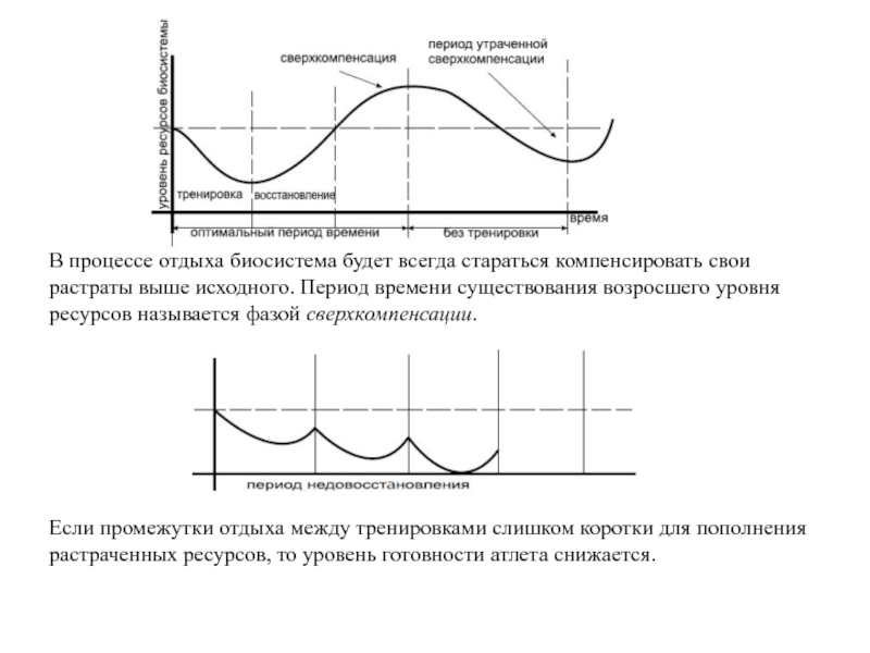 выше исходного. Период времени существования возросшего уровня ресурсов называется фазой сверхкомпенсации.