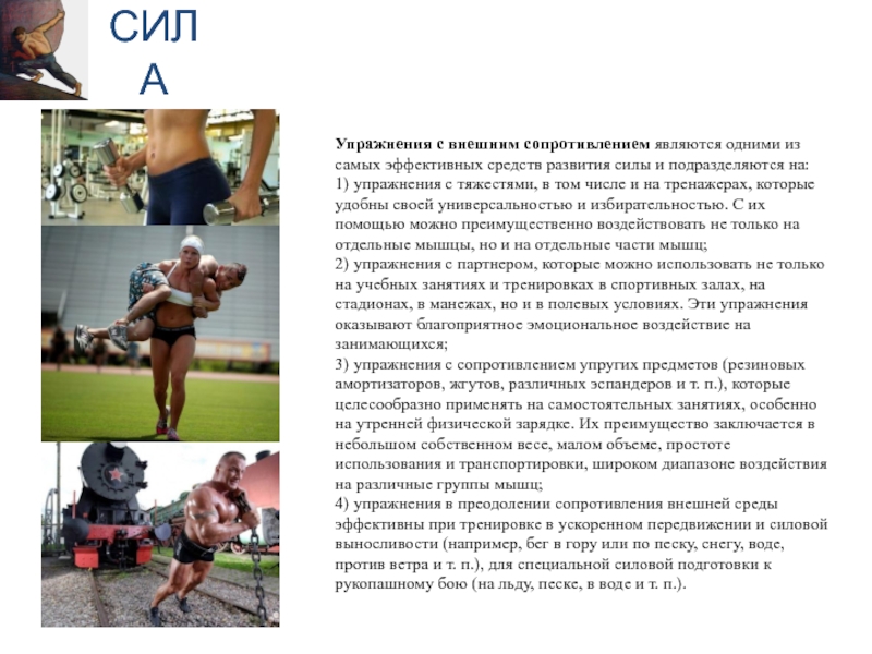 Слайд 86Упражнения с внешним сопротивлением являются одними из самых эффективных средств развития