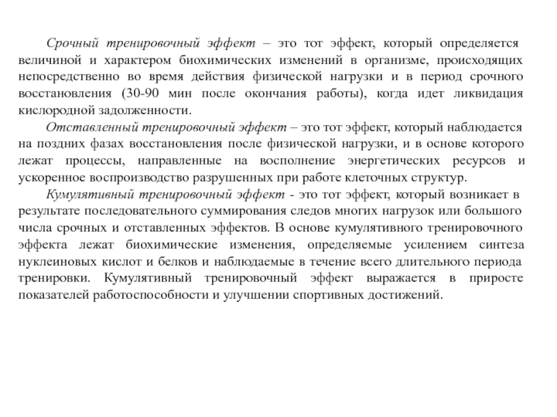 Тренировочный процесс процесс , как и большинство адаптационных реакций организма осуществляется в два этапа: начальный этап срочной, но не всегда совершенной адаптации, и последующий этап совершенной долговременной адаптации.