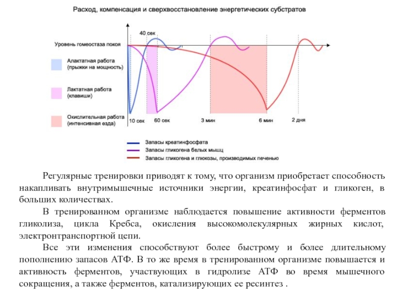 Слайд 9Регулярные тренировки приводят к тому, что организм приобретает способность накапливать