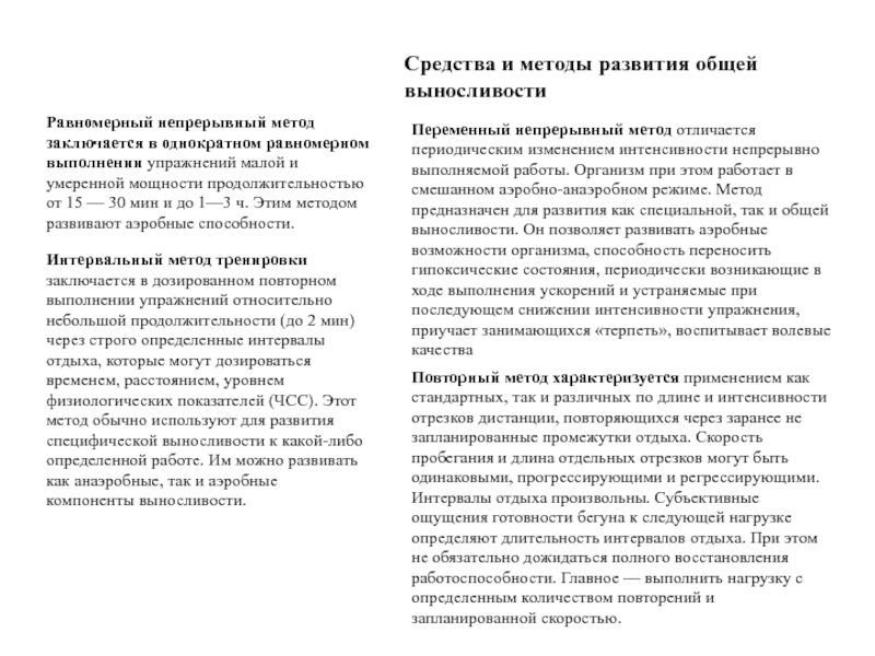 Увеличение объема и снижение интенсивности нагрузки - позволяет формировать скоростную выносливость. А максимальная по объему, во низкая по интенсивности работа - формирует выносливость.