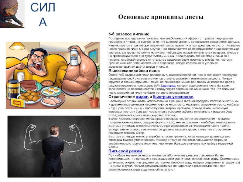 уровень аминокислот сохраняется дольше. Именно поэтому при наборе мышечной массы нужно питаться довольно часто: оптимальное число приемов пищи 5-6 раз в сутки. При такой частоте не перегружается пищеварительная система, а в кровь постоянно поступают небольшие порции питательных веществ, которые на протяжении всего дня будут питать мышцы. Если съедать тот же объем пищи за 3 приема, то абсорбируемые питательные вещества будут поступать в избытке, поэтому организм начнет депонировать их в виде жира, откуда извлечь их в условиях высококалорийной диеты затруднительно.